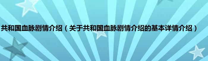 本文关于共和国血脉剧情介绍的基本详情介绍就讲解完毕,希望对大家有所帮助。