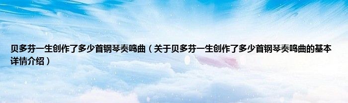 本文关于贝多芬一生创作了多少首钢琴奏鸣曲的基本详情介绍就讲解完毕,希望对大家有所帮助。