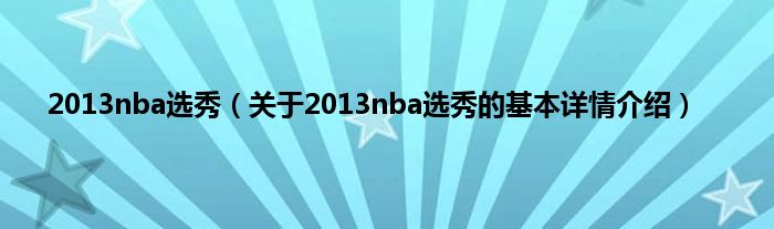 本文关于2013nba选秀的基本详情介绍就讲解完毕,希望对大家有所帮助。