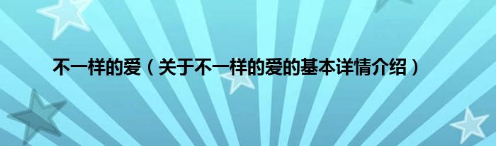 本文关于不一样的爱的基本详情介绍就讲解完毕,希望对大家有所帮助。