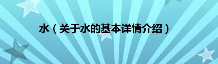 本文关于水的基本详情介绍就讲解完毕,希望对大家有所帮助。