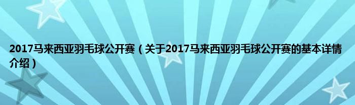 本文关于2017马来西亚羽毛球公开赛的基本详情介绍就讲解完毕,希望对大家有所帮助。