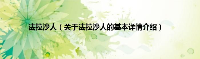 法拉沙人(关于法拉沙人的基本详情介绍)