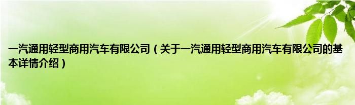 本文关于一汽通用轻型商用汽车有限公司的基本详情介绍就讲解完毕,希望对大家有所帮助。