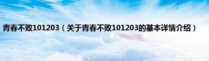 本文关于青春不败101203的基本详情介绍就讲解完毕,希望对大家有所帮助。