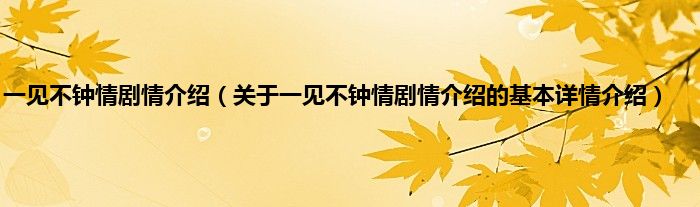 本文关于一见不钟情剧情介绍的基本详情介绍就讲解完毕,希望对大家有所帮助。