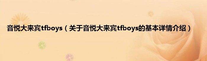 本文关于音悦大来宾tfboys的基本详情介绍就讲解完毕,希望对大家有所帮助。
