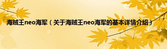 本文关于海贼王neo海军的基本详情介绍就讲解完毕,希望对大家有所帮助。