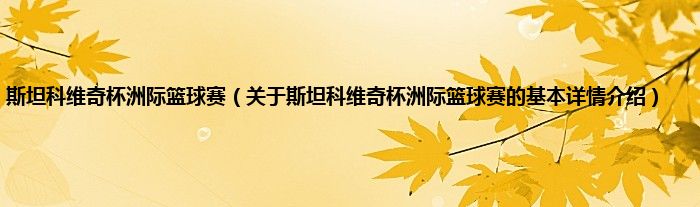 本文关于斯坦科维奇杯洲际篮球赛的基本详情介绍就讲解完毕,希望对大家有所帮助。