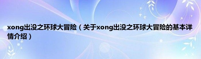 本文关于xong出没之环球大冒险的基本详情介绍就讲解完毕,希望对大家有所帮助。