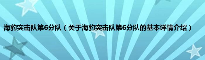 本文关于海豹突击队第6分队的基本详情介绍就讲解完毕,希望对大家有所帮助。