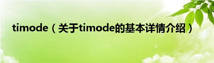 本文关于timode的基本详情介绍就讲解完毕,希望对大家有所帮助。