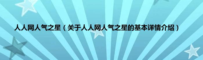 本文关于人人网人气之星的基本详情介绍就讲解完毕,希望对大家有所帮助。