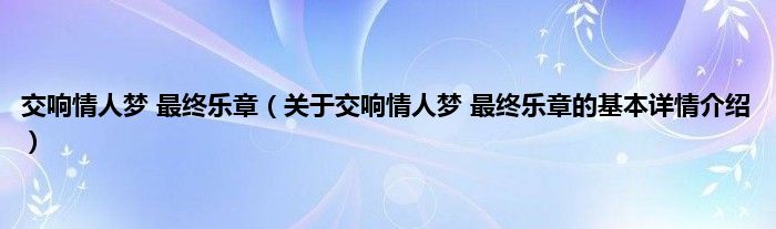本文关于交响情人梦 最终乐章的基本详情介绍就讲解完毕,希望对大家有所帮助。