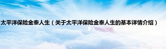 本文关于太平洋保险金泰人生的基本详情介绍就讲解完毕,希望对大家有所帮助。