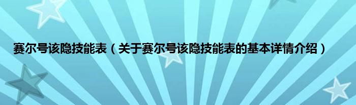 本文关于赛尔号该隐技能表的基本详情介绍就讲解完毕,希望对大家有所帮助。
