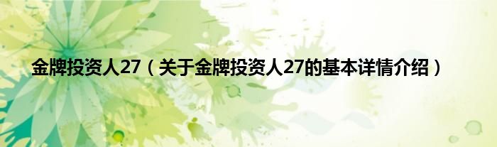 本文关于金牌投资人27的基本详情介绍就讲解完毕,希望对大家有所帮助。