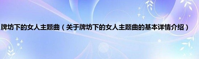 本文关于牌坊下的女人主题曲的基本详情介绍就讲解完毕,希望对大家有所帮助。