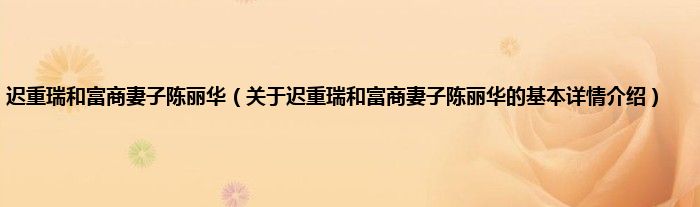 本文关于迟重瑞和富商妻子陈丽华的基本详情介绍就讲解完毕,希望对大家有所帮助。