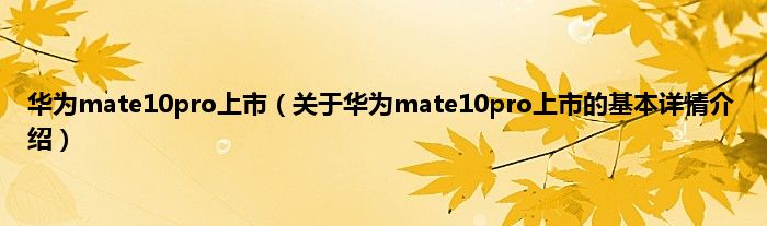 本文关于华为mate10pro上市的基本详情介绍就讲解完毕,希望对大家有所帮助。