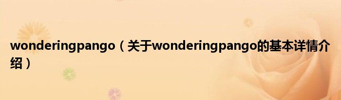 本文关于wonderingpango的基本详情介绍就讲解完毕,希望对大家有所帮助。