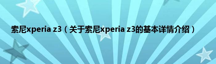 本文关于索尼xperia z3的基本详情介绍就讲解完毕,希望对大家有所帮助。