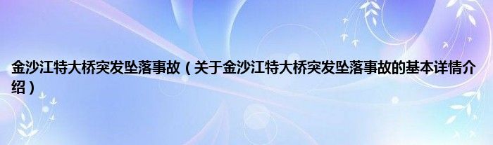本文关于金沙江特大桥突发坠落事故的基本详情介绍就讲解完毕,希望对大家有所帮助。