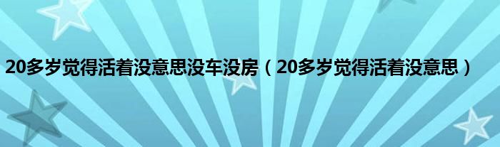 20多岁觉得活着没意思没车没房(20多岁觉得活着没意思)