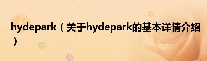 本文关于hydepark的基本详情介绍就讲解完毕,希望对大家有所帮助。