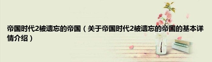 本文关于帝国时代2被遗忘的帝国的基本详情介绍就讲解完毕,希望对大家有所帮助。