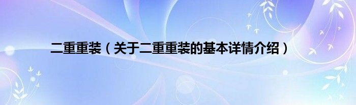 本文关于二重重装的基本详情介绍就讲解完毕,希望对大家有所帮助。