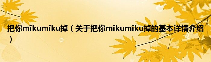 本文关于把你mikumiku掉的基本详情介绍就讲解完毕,希望对大家有所帮助。
