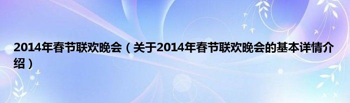 本文关于2014年春节联欢晚会的基本详情介绍就讲解完毕,希望对大家有所帮助。