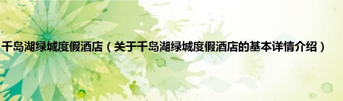 本文关于千岛湖绿城度假酒店的基本详情介绍就讲解完毕,希望对大家有所帮助。
