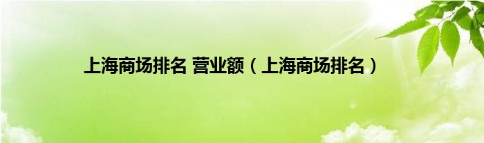大家好,小问来为大家解答以上问题。上海商场排名 营业额,上海商场排名这个很多人还不知道,现在让我们一起来看看吧!