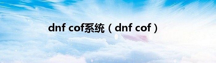 大家好,小问来为大家解答以上问题。dnf cof系统,dnf cof这个很多人还不知道,现在让我们一起来看看吧!