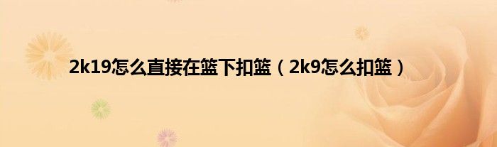 大家好,小问来为大家解答以上问题。2k19怎么直接在篮下扣篮,2k9怎么扣篮这个很多人还不知道,现在让我们一起来看看吧!