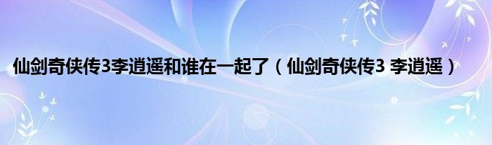 大家好,小问来为大家解答以上问题。仙剑奇侠传3李逍遥和谁在一起了,仙剑奇侠传3 李逍遥这个很多人还不知道,现在让我们一起来看看吧!