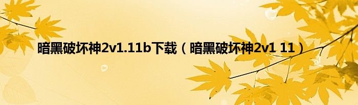 暗黑破坏神2v1.11b下载(暗黑破坏神2v1 11)