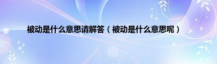 大家好,小问来为大家解答以上问题。被动是什么意思请解答,被动是什么意思呢这个很多人还不知道,现在让我们一起来看看吧!