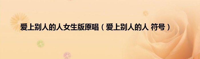 大家好,小问来为大家解答以上问题。爱上别人的人女生版原唱,爱上别人的人 符号这个很多人还不知道,现在让我们一起来看看吧!