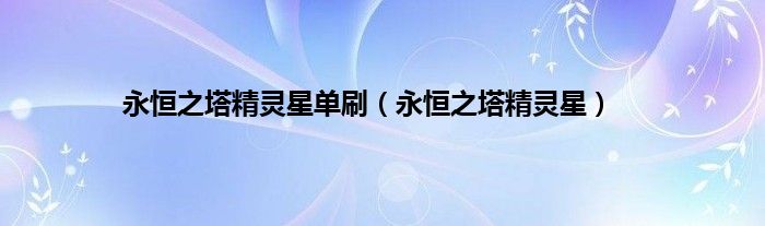 以上就是【永恒之塔精灵星单刷,永恒之塔精灵星】相关内容。