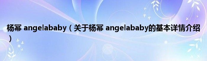 本文关于杨幂 angelababy的基本详情介绍就讲解完毕,希望对大家有所帮助。