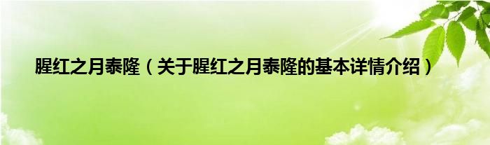 本文关于腥红之月泰隆的基本详情介绍就讲解完毕,希望对大家有所帮助。