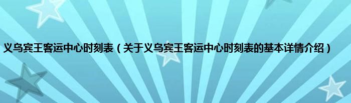 本文关于义乌宾王客运中心时刻表的基本详情介绍就讲解完毕,希望对大家有所帮助。