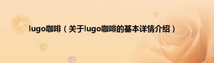 本文关于lugo咖啡的基本详情介绍就讲解完毕,希望对大家有所帮助。