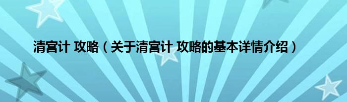 大家好我是小蝌蚪,清宫计 攻略,关于清宫计 攻略的基本详情介绍很多人还不知道,那么现在让我们一起来看看吧!