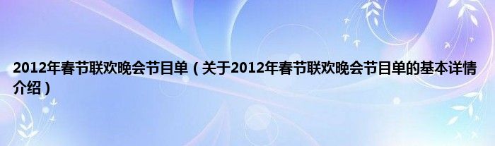 本文关于2012年春节联欢晚会节目单的基本详情介绍就讲解完毕,希望对大家有所帮助。