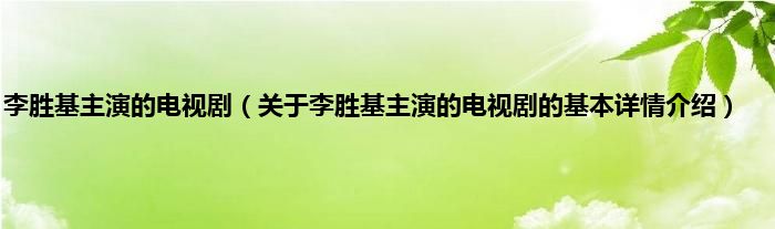 本文关于李胜基主演的电视剧的基本详情介绍就讲解完毕,希望对大家有所帮助。