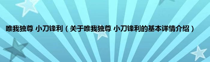 本文关于唯我独尊 小刀锋利的基本详情介绍就讲解完毕,希望对大家有所帮助。